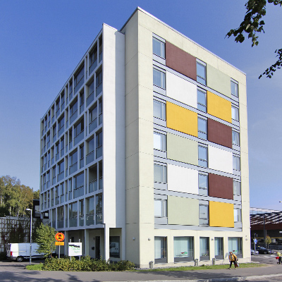 41 vuokra-asuntoa, 4 tehostetun hoidon ryhmäkotia, liiketiloja